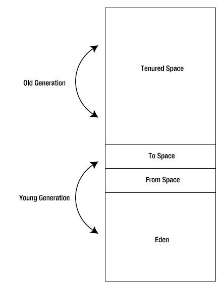 - 1 年轻的一代(young generation),包括eden和2个幸存者空间(出发地和目的地the from space and the to space)
