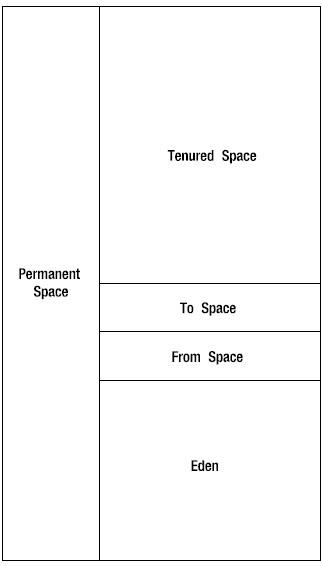 容易误解jvm为持久空间分配内存的目的。堆仅仅存储类的实例,但jvm在堆中创建类实例之前,它必须把字节流文件(.class文件)装载到程序内存中。它利用内存中的字节流在堆中创建类的实例。jvm利用程序的内存来装载字节流文件,这个内存空间称为持久空间。图6显示了持久空间和堆的关系:它存在于jvm程序中,并不是堆的一部分。