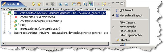 您也可以通过 Search 窗口隐藏良好的特性来过滤这些结果。如果您访问 Search 窗口菜单(在右上角,最小化和最大化按钮的旁边),您可以找到泛型感知的过滤选项。